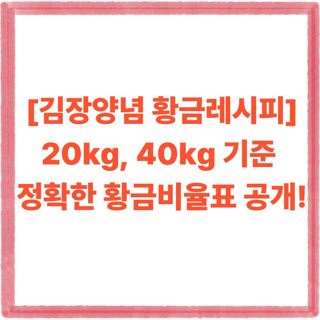 20kg ๊น์ฅ๊น์น, 40kg ๊น์ฅ๊น์น์ ๋ฑ ๋ง๋ ์๋ ํฉ๊ธ๋น์จ์ ์ง๊ธ ๋ฐ๋ก ํ์ธํด๋ณด์ธ์!